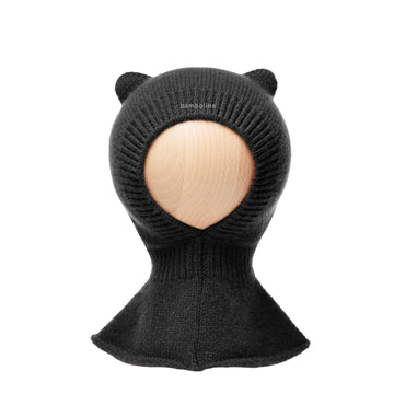 100 % cashmere cat hat in balaclava style. The original shape and luxuary composition of yarn creates a soft handfeel but at the same time very light baby hat with loop. The characteristic kitty hat shape makes the look of baby adorable and original. Balaclava hat with turtleneck perfect covers the ears and neck.