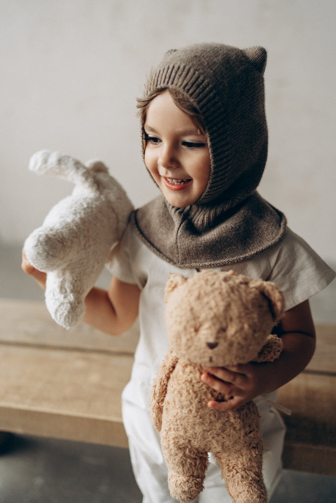 Perfect for winter days under a snowsuit, it replaces the need for a scarf while keeping the neck and ears warm. Made from delicate cashmere, non-itchy, and wonderfully soft against the skin. A timeless piece of everyday comfort light, warm, and irresistibly cute.