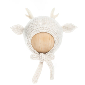 Hand-knitted Deer Bonnet - ivory*