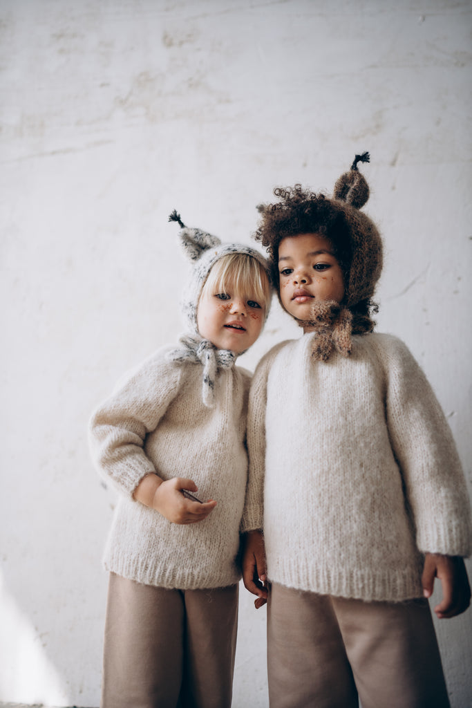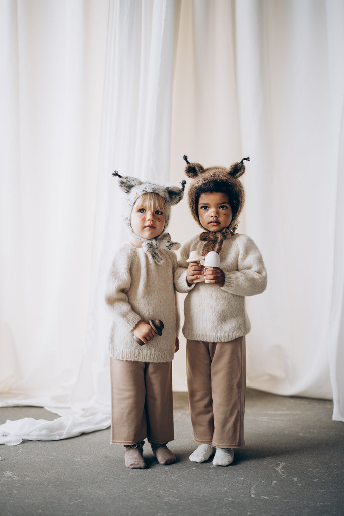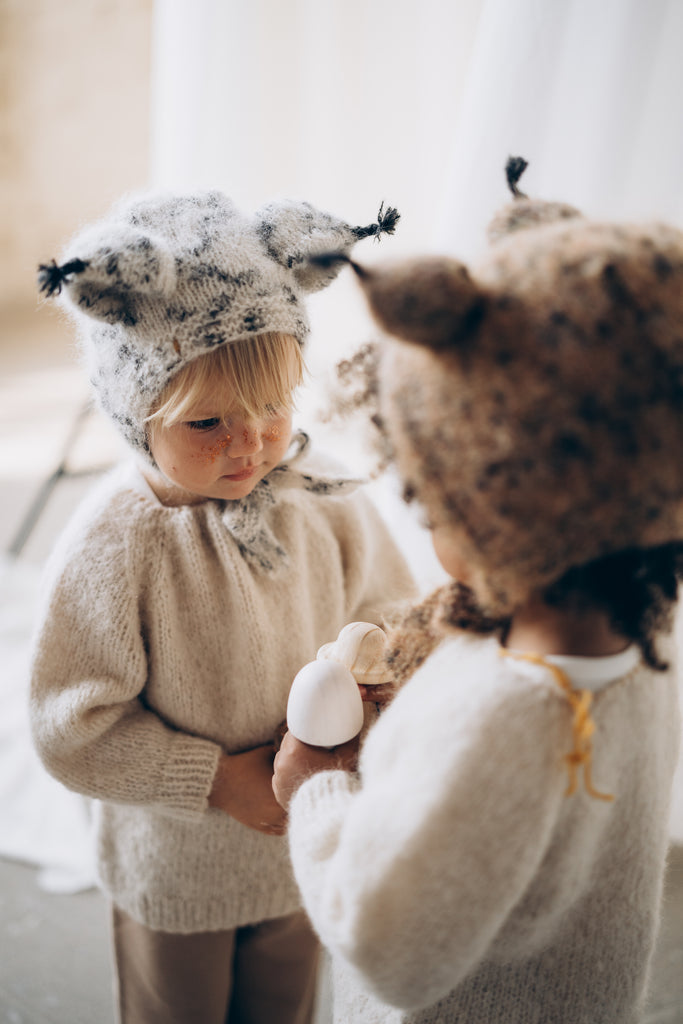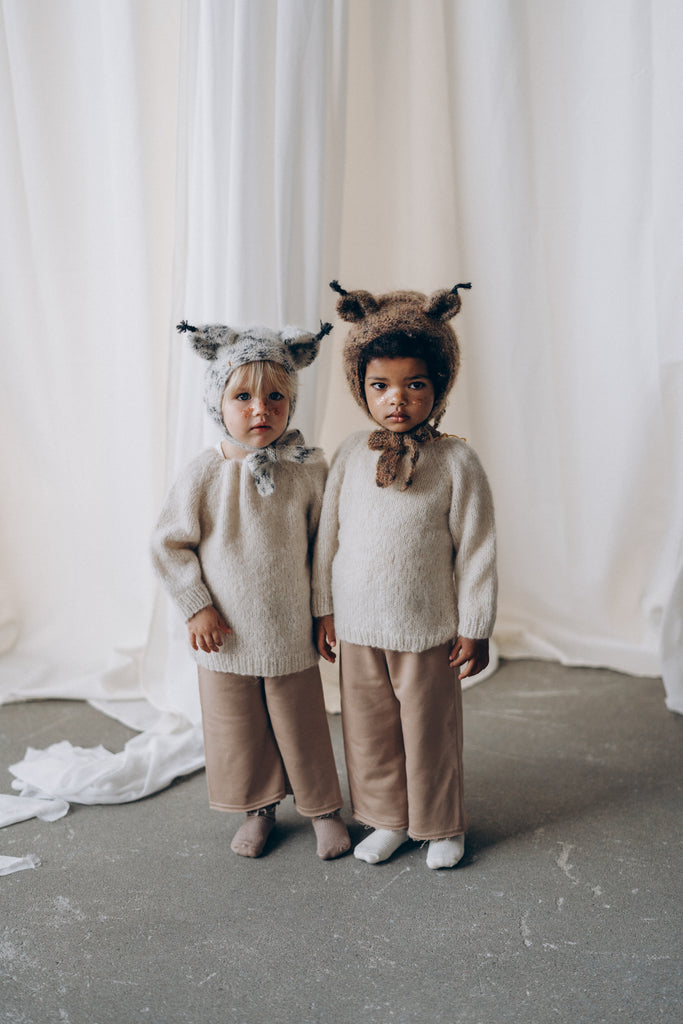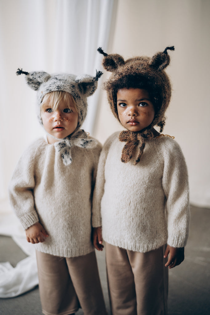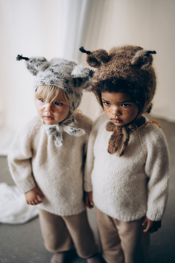A magical, hand-knitted bonnet inspired by the wild beauty of the lynx. With delicate ties under the chin, it stays perfectly in place, wrapping little ears in warmth. Soft, fluffy yarn and the charming oversized ears transform your child into an adorable little wild cat.