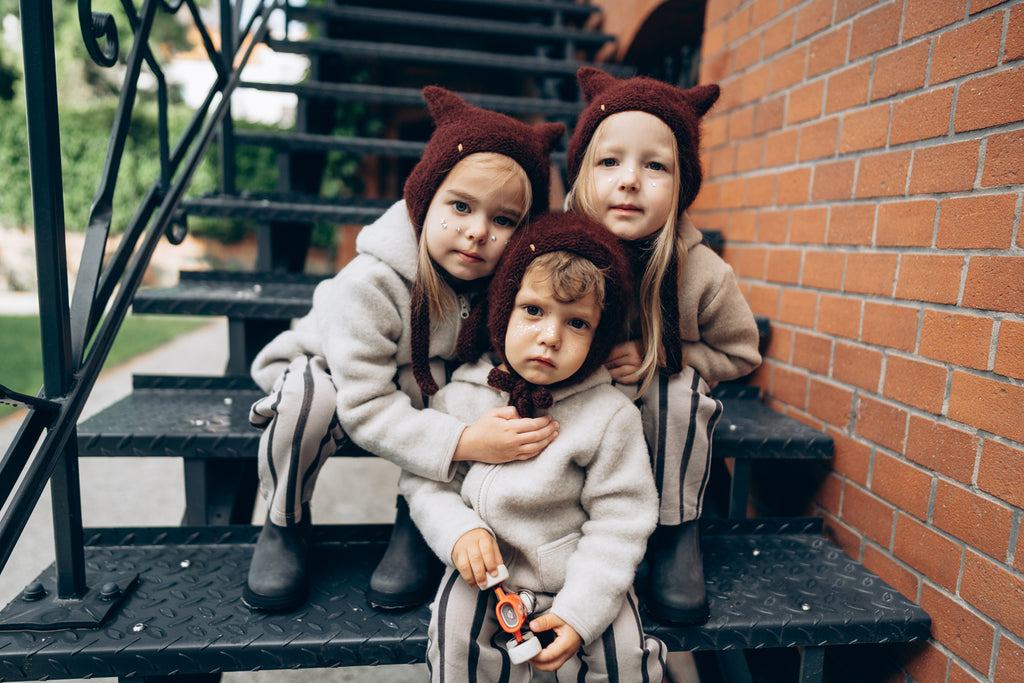 Soft knitted kitty bonnet for baby and toddlers. Bonnet tieded under the neck, covers the ears and is very flexible. The original blend of the best selections of light mohair and alpaca creates a soft handfeel but at the same time very light baby hat. The characteristic kitty hat shape makes the look of baby adorable and original.
