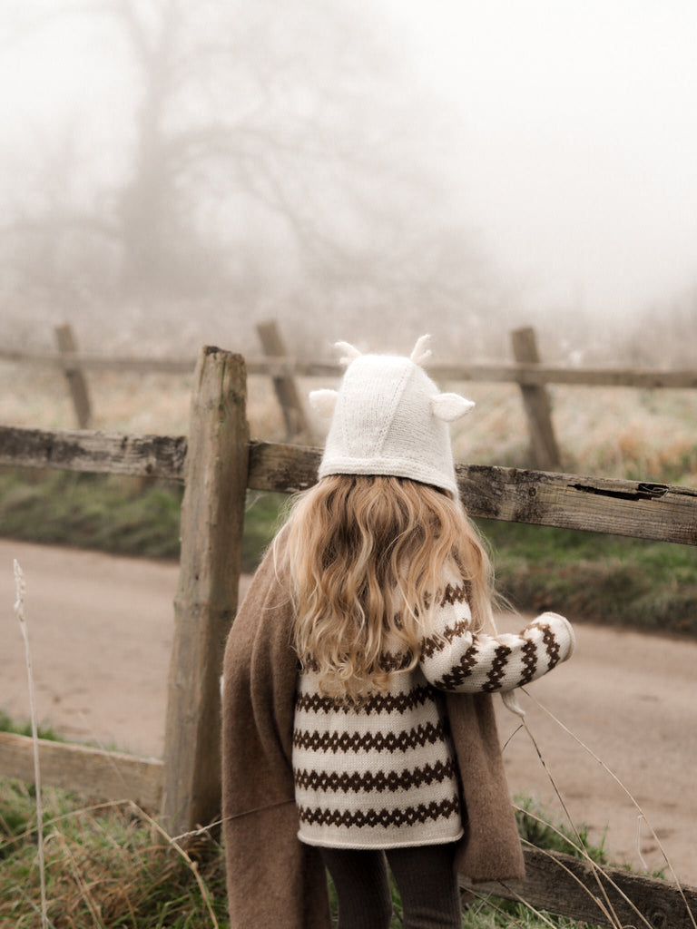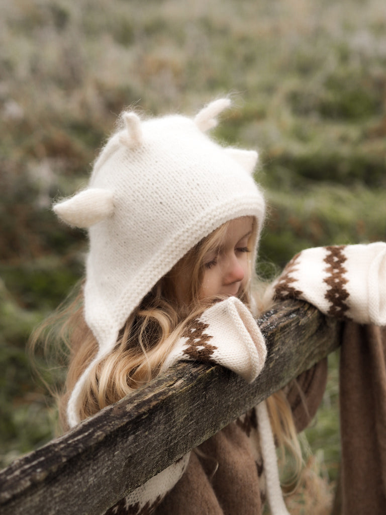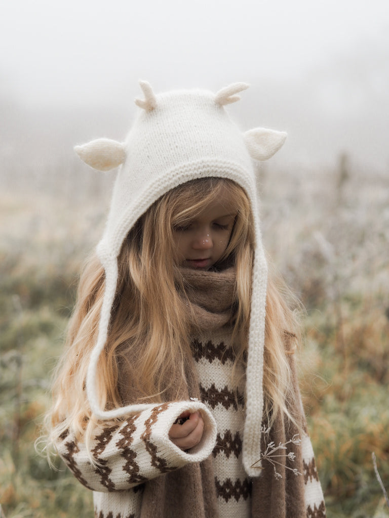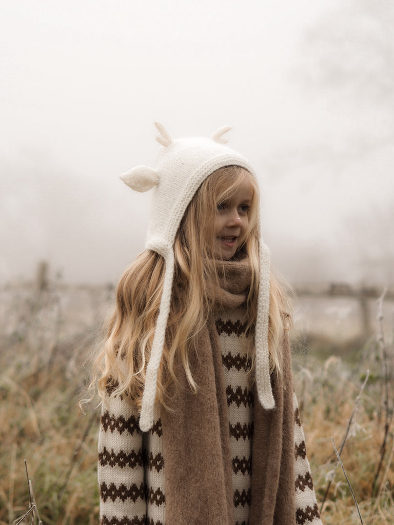 Hand-knitted Deer Bonnet - ivory*