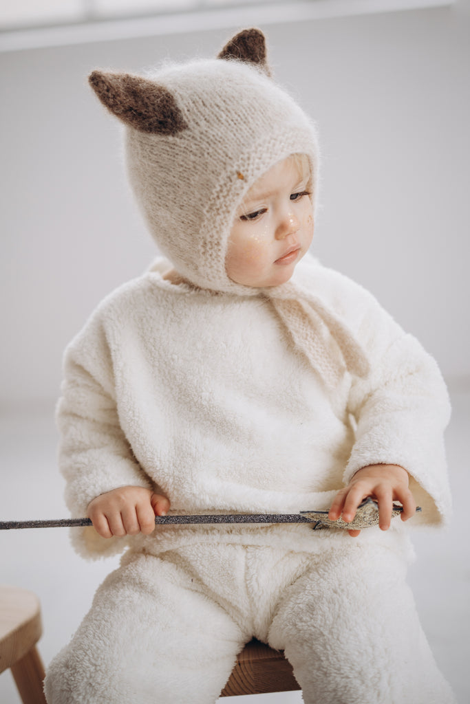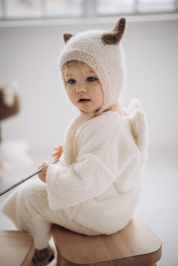 Handmade Baby Hat – Little Goat Design. This 100% hand-knitted baby hat is both functional and irresistibly cute. Tied securely under the chin, it perfectly covers your child’s ears and forehead, keeping them warm and cozy. Featuring colorful little horns that resemble a playful goat, the hat gives your little one the charming look of a tiny animal. Soft, lightweight, fluffy, and warm, this adorable hat combines comfort and style, making it an ideal accessory for your baby.