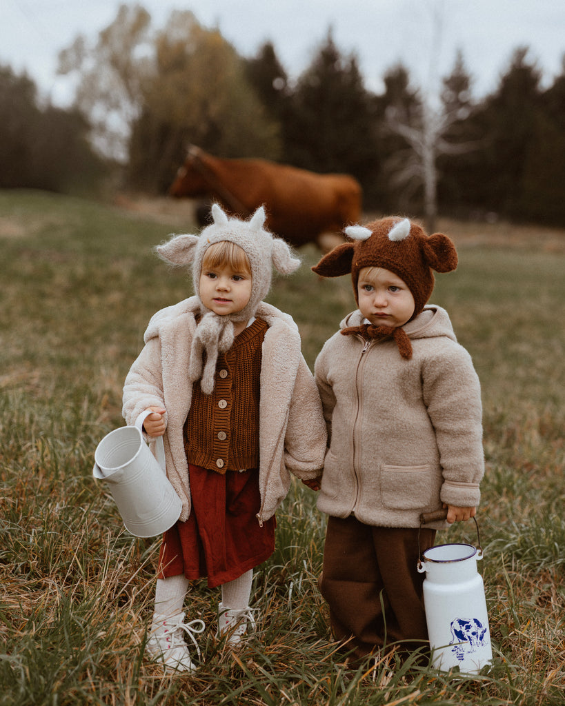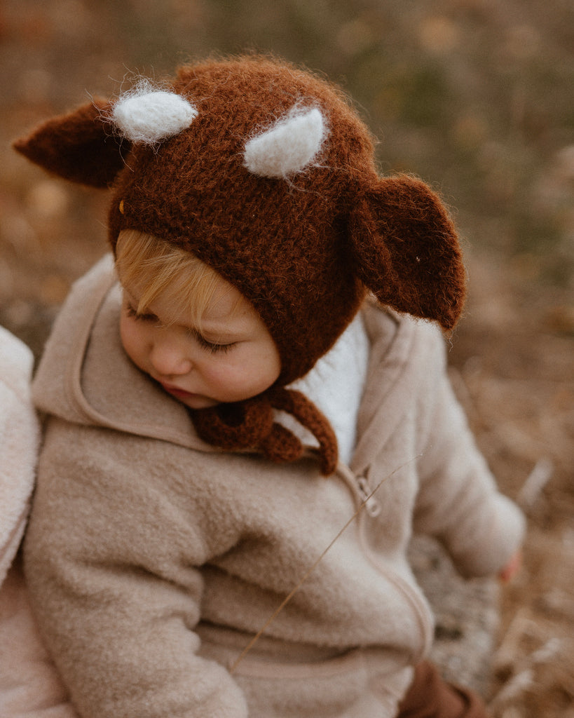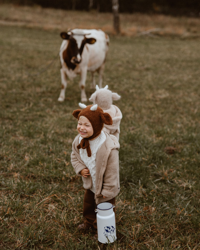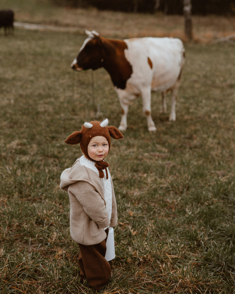 With its charming little ears and playful cow spots, this bonnet adds a touch of sweetness to every outfit. Ideal for newborn photos, as a thoughtful baby shower gift, or simply for everyday winter wear, it’s designed to grow beautifully with your child from baby to toddler.