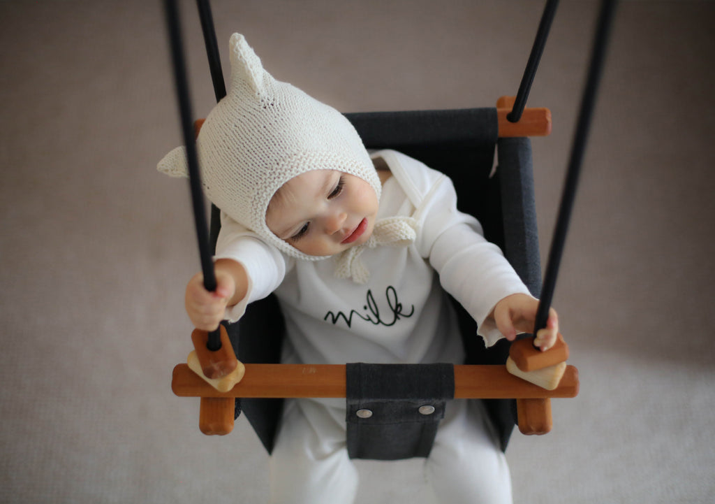 Soft knitted kitty bonnet for baby and toddlers. Bonnet tieded under the neck, covers the ears and is very flexible. The original blend of the best selections of merino and cotton creates a soft handfeel but at the same time very light baby hat. The characteristic kitty hat shape makes the look of baby adorable and original.