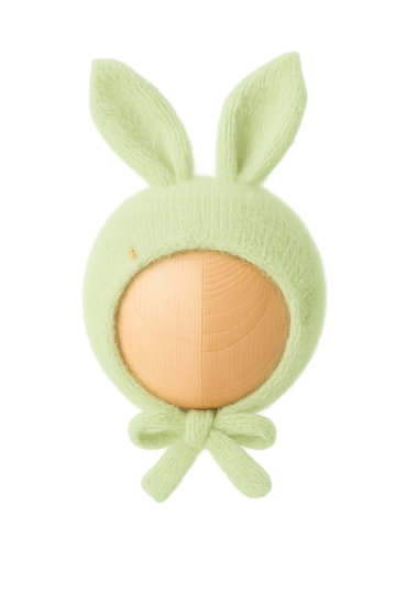 Soft knitted bunny hat. Bonnet tied under the neck, covers the ears and is very flexible. The original shape and funny ears makes baby look like little bunny. Natural blend of alpaka and merino wool add soft and cozy facture of bonnet hat.